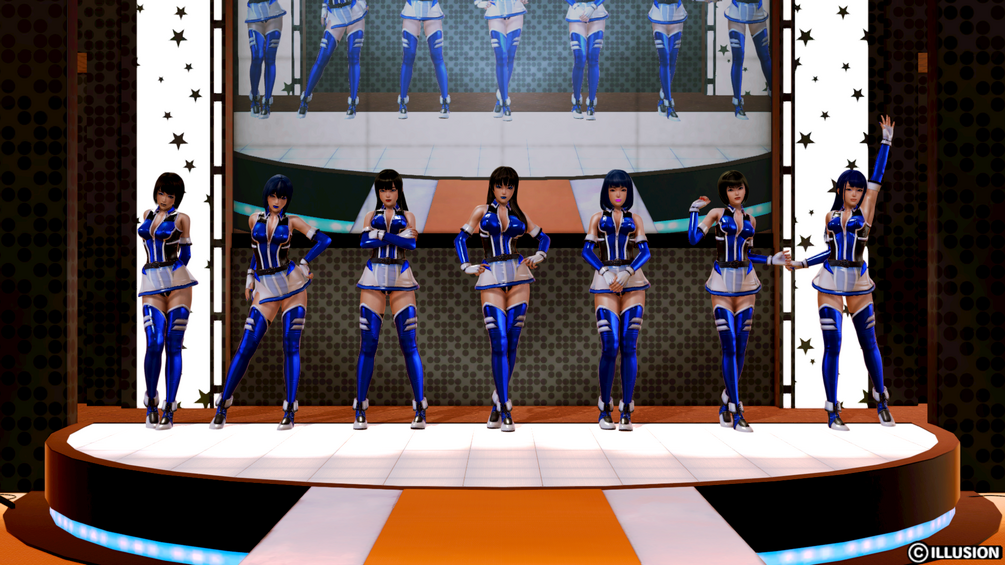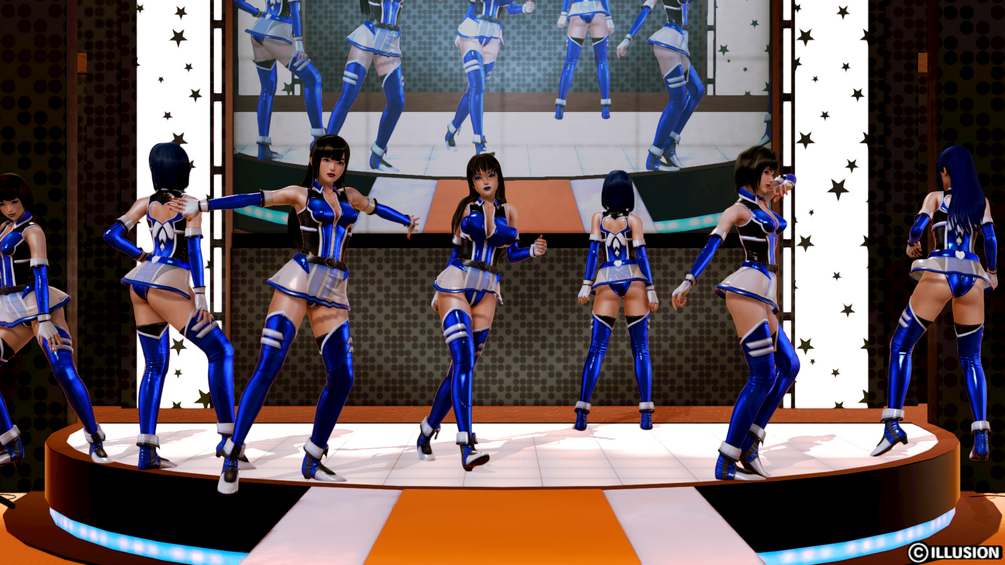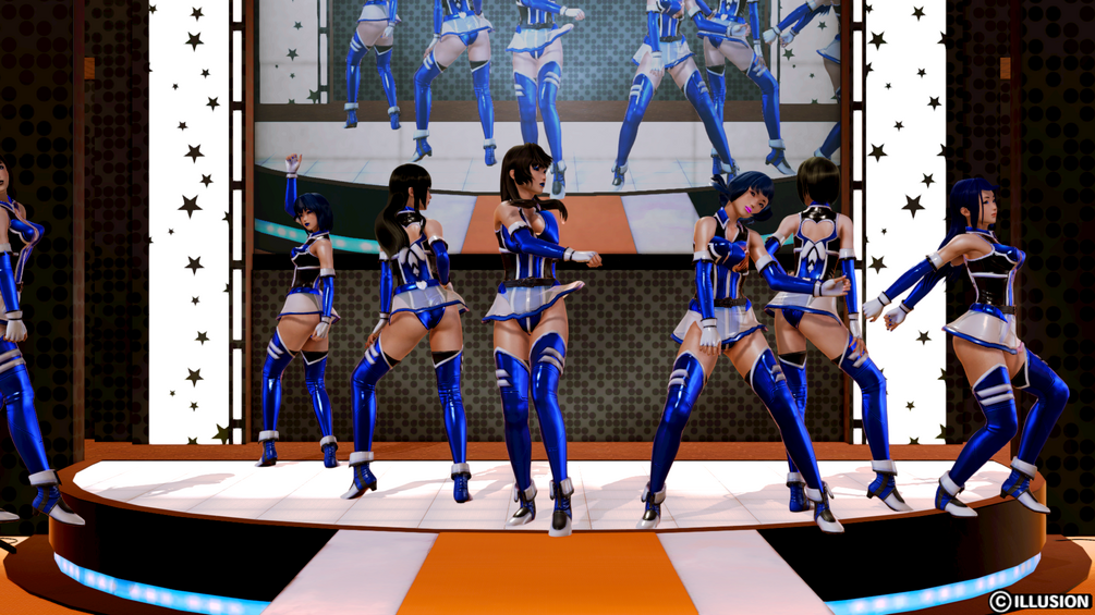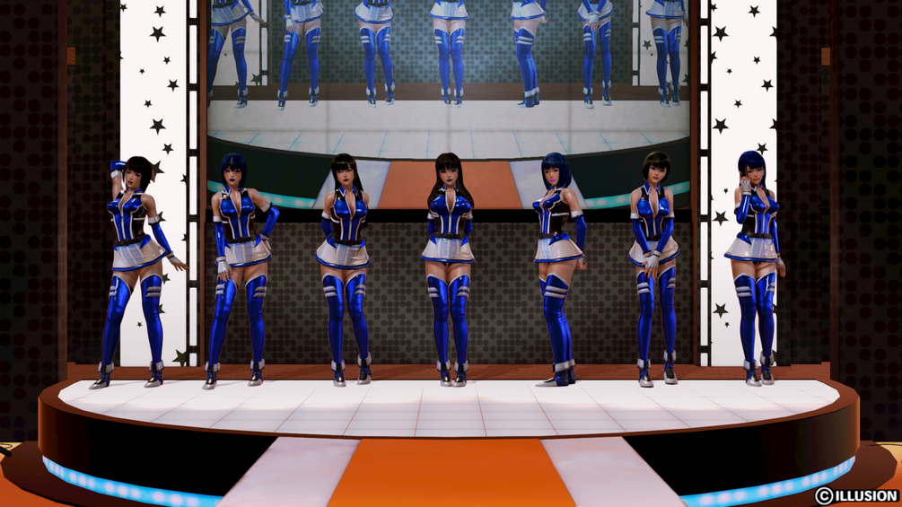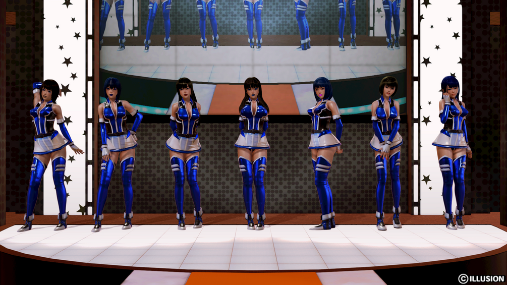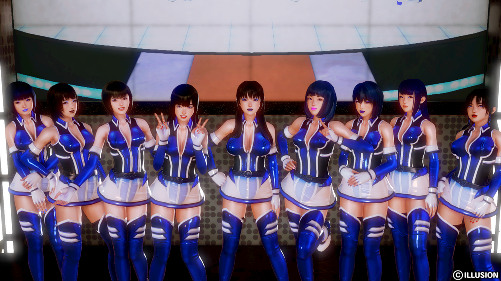 I just created 9 members of the stylishly futuristic-themed girl group called the Cyber Blue Girls using the built-in character creator in HoneySelect by Illusionsoft.
